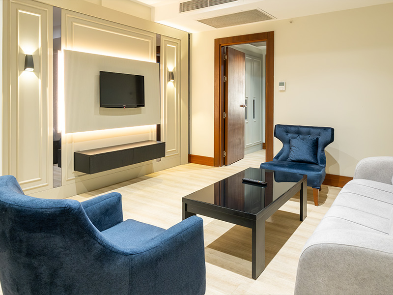 All rooms have adjustable central air conditioning, smoke detector, minibar, shower, hair dryer, direct dial telephone, wireless internet connection, electronic safe, electronic lock system, satellite and cable broadcasting, LCD screen TV, tea/coffee service and 24-hour room service.