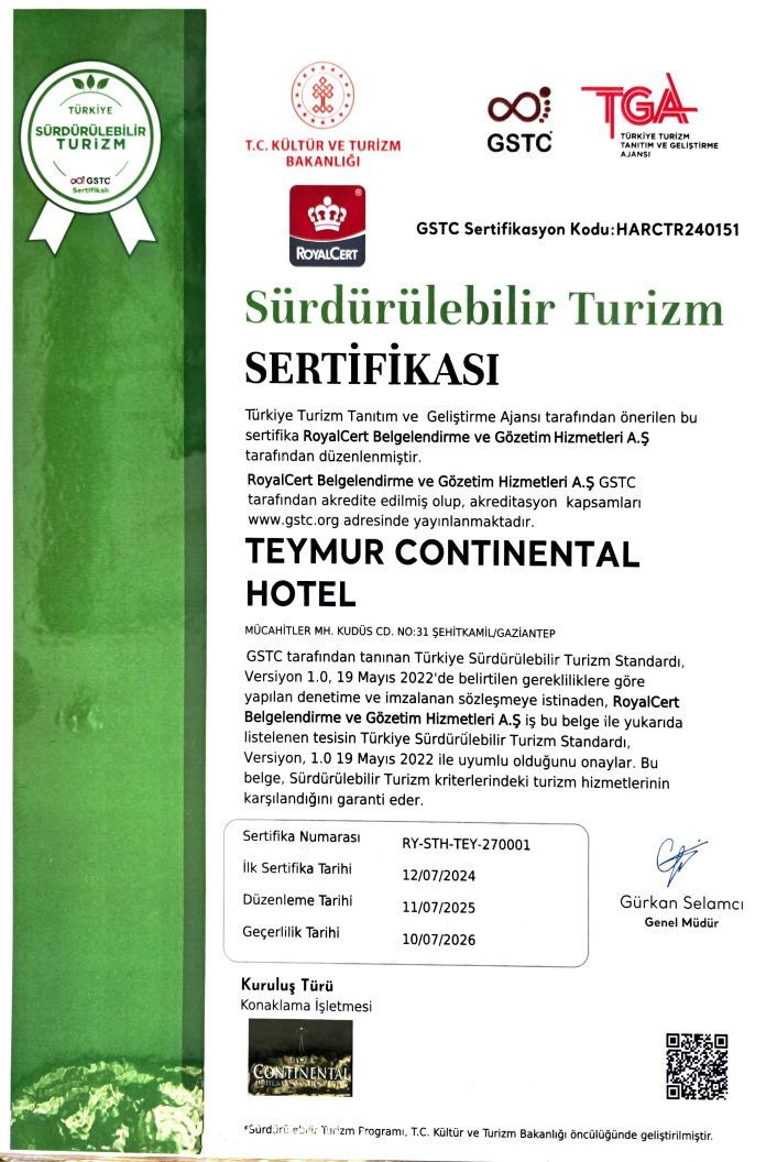 Teymur Continental Hotel & Convention Center olarak, özverili çalışma prensibi ile hareket ettik. Bu süre zarfında misafirlerimize modern ve konforlu bir otel rahatlığı yaşatmanın yanı sıra, değerlerimizi de korumaya özen göstererek, turizm sektörüne katkıda bulunmayı sürdürüyoruz. Sizleri özel hissettirmek öncelikli hizmet anlayışımız olduğu için...